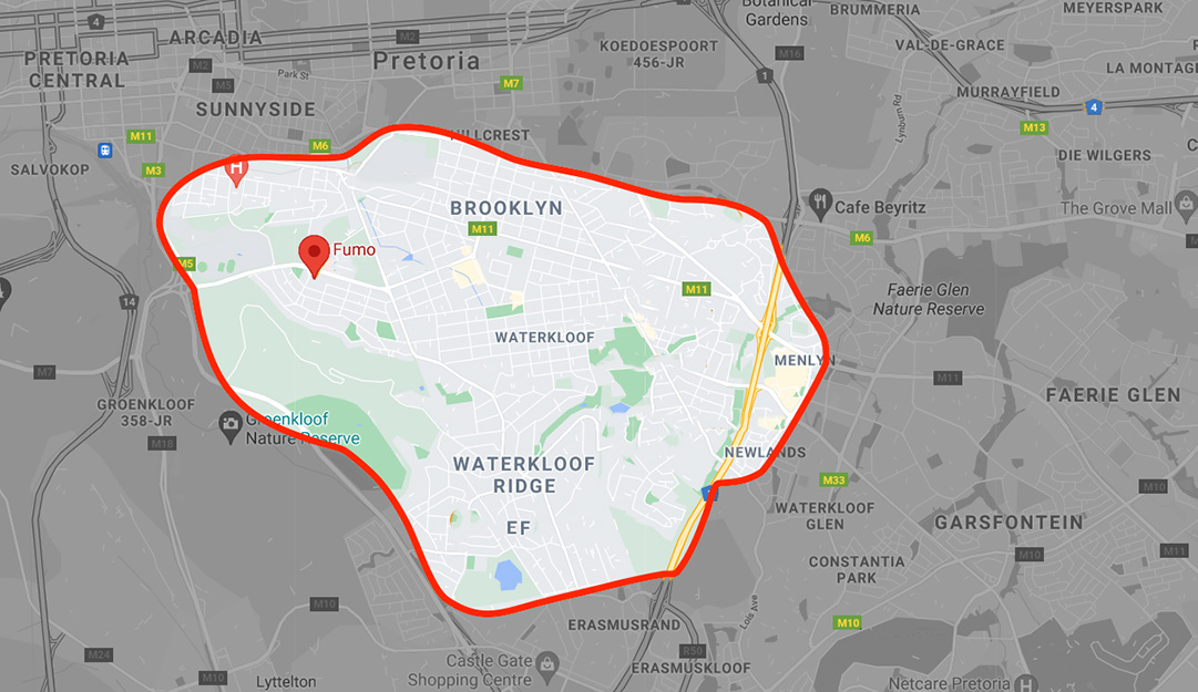 3) Choose “pick up” option or free delivery in these areas: Waterkloof, Brooklyn, Hazelwood, Menlyn (map at the bottom of this page).